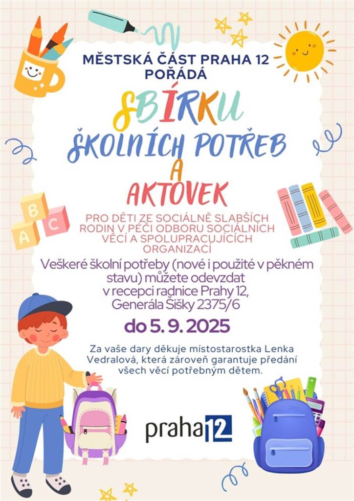Rádi byste podpořili děti ze sociálně slabších rodin, nebo naopak pomoc sami potřebujete? Hned v několika městských částech na začátku školního roku probíhají sbírky školních potřeb a aktovek, jejichž cílem je pomoci rodičům, kteří nemají možnost vynaložit peníze na školní výbavu svých potomků.