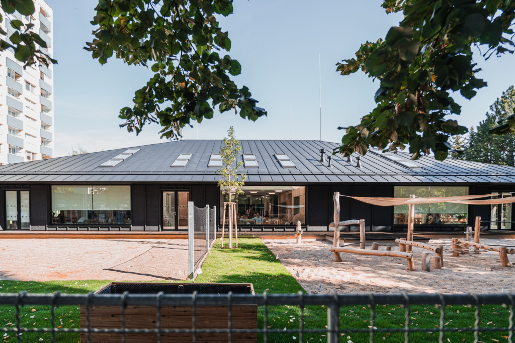 Architekti ze studia Atelier Sever vsadili na jednoduchý, ale promyšlený koncept: velká okna přivádějí do tříd denní světlo, přírodní materiály zase dodávají interiéru klidnou atmosféru. „Školka je místem, kde se setkává radost, objevování a svoboda tvořit,“ vysvětluje architekt Štěpán Matoušek.